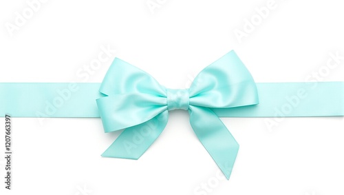 Teal satin ribbon bow on white background modern and minimalist for various campaigns