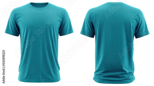Teal Tshirt - Blank Turquoise Shirt Design for Men Front and Back View on White Background