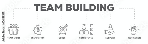 Team building building banner web icon vector illustration concept with icon of team spirit, inspiration, goals, competence, support, and motivation