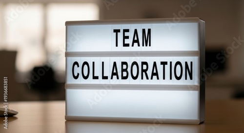 team, collaboration, teamwork, office, workspace, lightbox, signs, message, corporate, business, communication, motivation, inspiration, modern, interior, desk, table, bright, positive, concept, leadership, partnership, strategy, success, achievement, project, meeting, innovation, creativity, development, growth, professional, colleague, employee, workplace, marketing, advertising, design, visual