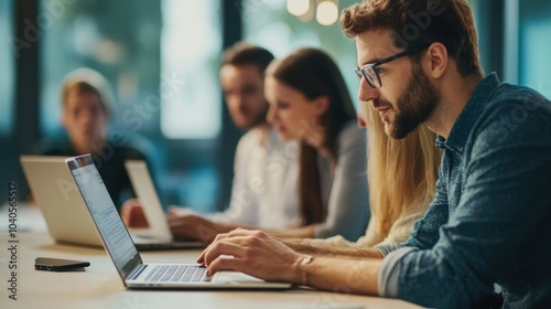 brainstorming, colleague, colleague, cooperation, co-worker, discussion, focusing, friends, group, meeting, member, man, occupation, team, teamwork, together, woman, working, student, smiling, office, project, male, businesswoman, people, indoor, workplace, setting, businessman, communication, happy, female, laptop, man, technology, caucasian, copy, space, clean, adult, lifestyle, startup, creative, minimalistic, using, ample, camaraderie