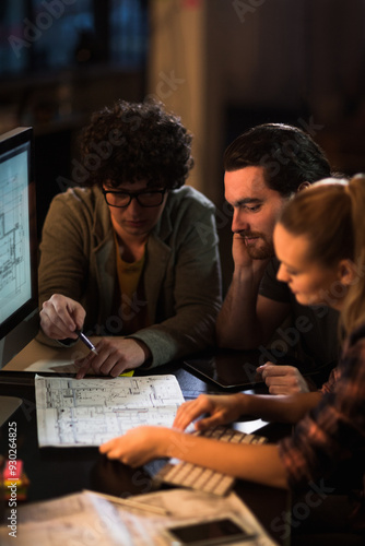 people, team, architect, collaborating, project, modern, office, young, diverse, adult, woman, man, caucasian, white, monitor, design, professional, work, technology, creative, architecture, meeting, planning, teamwork, workspace, group, discussion, innovation, occupation, collaboration, young adult, diversity, inclusion, male, female, lifestyle, copy space