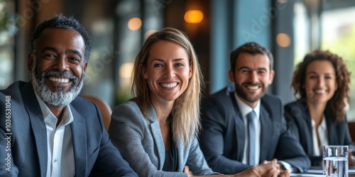 Team of businesspeople smiling at the camera in a boardroom, Generative AI