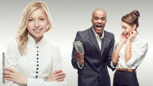 adult, african, american, black, business, businessman, businessperson, businesswoman, cash, caucasian, cheerful, colleague, company, corporate, delighted, dollar, emotional, expression, female, finance, formal, girl, glad, grey, group, guy, happy, holding, leader, looking, male, man, money, people, positive, professional, screaming, standing, success, suit, surprised, team, teamwork, three, white, woman, young