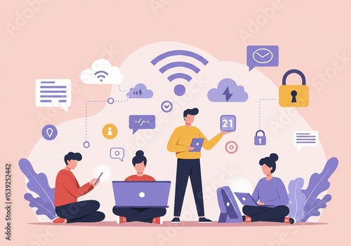 Teamwork & Technology Campaign Background Illustration