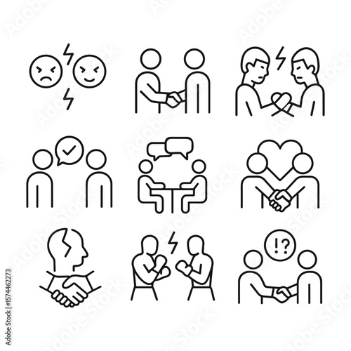 icon, teamwork, line, collaboration, conflict, resolution, mediation, peace, negotiation, agreements, handshake, communication, diplomacy, solution, cooperation, discussion, meeting, business, professional, harmony, vector, signs, symbol, outline, black, linear, compromise, settlement, arbitration, dialogue, oneness, partnership, consensus, workplace, office, management, leadership, human, resource, legal, law, justice, balance, equality, fairness, diversity, inclusion