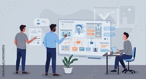 teamwork, collaboration, datum, analysis, business, technology, modern, office, digital, strategy, planning, meeting, project, management, graphic, chart, information, process, workflow, innovation, efficiency, communication, network, connection, growth, progress, result, success, solution, people, man, employee, men at work, computer, laptop, screen, interface, dashboard, presentation, productivity, improvement