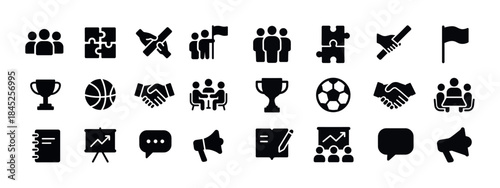 teamwork, success, icon, business, sport, communication, strategy, goal, group, puzzle, handshake, trophy, basketball, meeting, flag, audience, speech, chart, board, note, graph, talk, megaphone, leader, winner, victory, game, planning, discussion, achievement, collaboration, icon, progress, symbol, oneness, plan, conversation