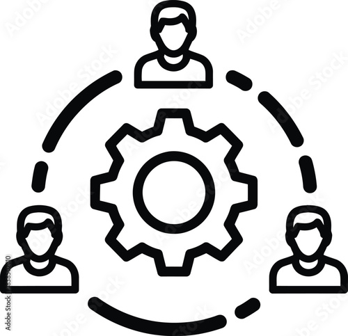 teamwork, collaboration, gear, people, connection, group, business, workflow, cooperation, management, oneness, productivity, communication, corporate, icon, mechanism, process, organisation, outline, symbol, efficiency, support, partnership, illustration, coordination, networking, development, integration, system