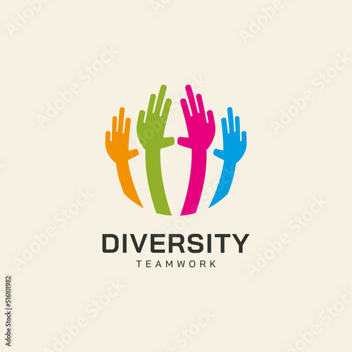 Teamwork diversity vector icon illustration with hand concept logo design