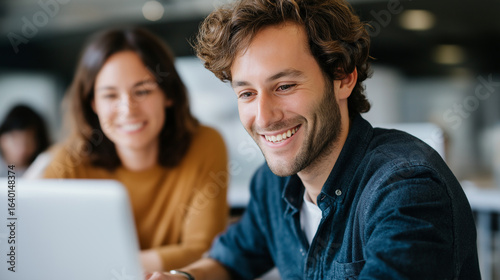 teamwork, collaboration, project, office, leadership, businessperson, smiling, partnership, laptop, employee, productive, creative, professional, workspace, inspiration, innovation, cooperation, success, brainstorming, idea, skill, career, entrepreneurship, job, creativity