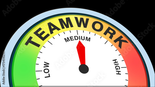 Teamwork medium, concept illustration showing moderate collaboration, balanced cooperation, or average group performance. Ideal for business, management, or organizational visuals in charts, meters