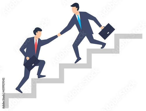 Teamwork. Men in suits help each other at work. illustration