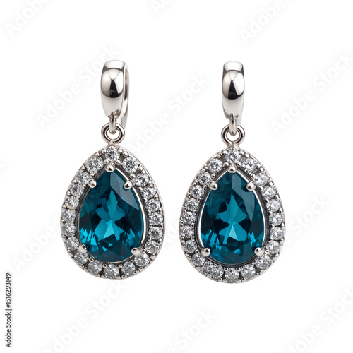 Teardrop Earrings with Vibrant Teal Gemstone and Crystal Accents, Isolated on transparent background