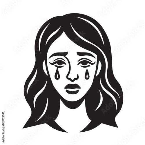 woman, tearful, face, crying, emotion, sorrowful, icon, vector, illustration, stylised, minimalist, female, profile, graphic, symbol, portrait, head, sideview, dramatic, outline, line, bold, white, black, silhouette, artistic, stylish, feeling, grieved, melancholy, flat, decorative, isolated, girl, single, minimal, modern, ink, look, mood, expression