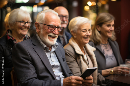Tech Savvy Seniors. Group of seniors using tablets for video calls, embracing technology in senior life. Generative Ai.