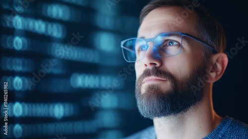 Tech Visionary Man Explores Digital Data Stream
