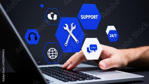 Technical support and customer service concept. Digital icon representing technical support, customer service, and 24/7 assistance. Business technology solutions for global support, service management