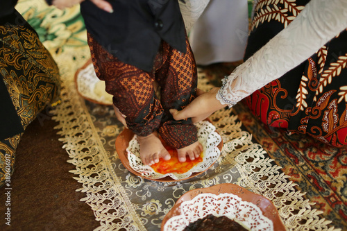 Tedak Sinten is traditional java for the first time a child sets foot on the ground , colorfull ornamental chicken coop.