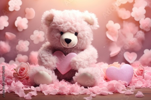 teddy bear with flowers and hearts in fluffy paws Teddy Bear with heart Valentines teddy bear