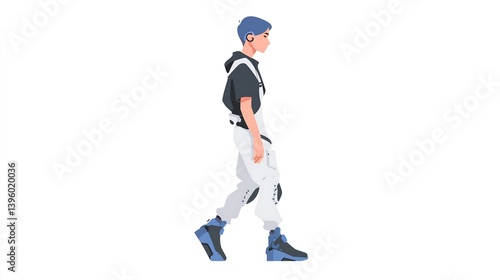 Teen Male Character in Blue and White Streetwear