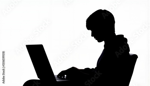 teenage, silhouette, laptop, online, danger, blackmail, vulnerability, technology, digital, identity, male, youth, sitting, focused, dark, shadow, neutral, isolation, anxiety, tension, cyber, news, issue, black-and-white, white background, emotional, concept, learning, struggling, environment, hooded, chair, screen, night time, alone, serious, thought, worry, 1, solitary, person, youth culture, contemporary, modern, teenage, impact, threat