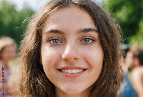 teenager, teenage girl, close-up face, friendly, cheerful and in a good mood, in a good mood and with a smile, smiling happily and contentedly, outside