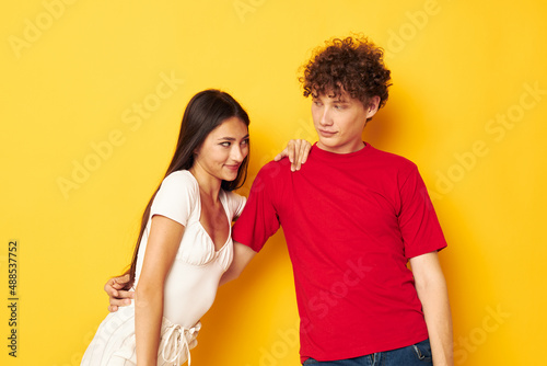 guy, together, girlfriend, male, person, 2, boyfriend, couple, female, happy, man, woman, young, background, friends, posing, looking, isolated, portrait, white, adult, girl, casual attire, indoor, joyful, smile, teenage, boy, love, pretty, smiling, caucasian, attractive, cheerful, cute, lifestyle, beautiful, human relationships, photogenic, 20s, advert, advertisement, african american, attire, billboard, bonding, communicate, content, conversation, cool