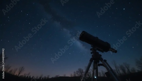 Telescope pointing at starry sky with the Milky Way night landscape
