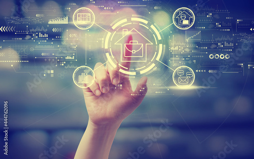 telework, tele, work, home, home office, flu, virus, flu, pandemic, epidemic, disease, sick, quarantine, outbreak, viral, business, concept, hand, point, finger, technology, tech, night, light, buttons, touch, press, filter, bokeh, blue, dark, screen, shiny, city