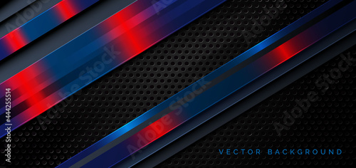 Template diagonal lines blue and red overlapping layers on black metal background.