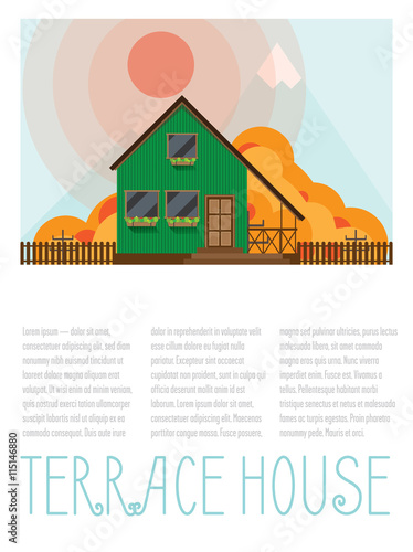 illustration, landscape, house, web, template, mountain, nature, season, tour tourism, relaxation, rain, cloud, background, banner, art, element, vector, autumn, harvest, village, road, tour, holiday, weekend, hunting, farm, sun, river, spruce, garden, farmer, ranch, shadow, street, day, town, island, yellow, quiet, environment, architecture, leaf, foliage, illustrated, column, terrace, fence, paint