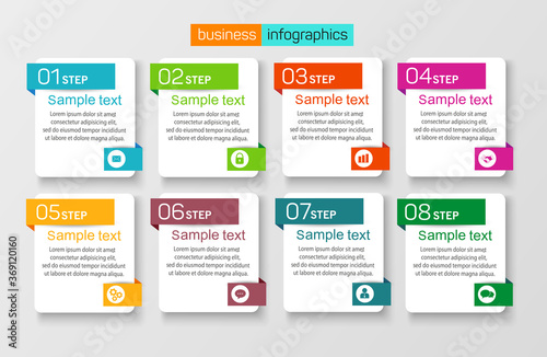 Template vector infographic set with 8 options. Abstract modern design can used for banner diagram workflow timeline and web design layout, presentation templates background