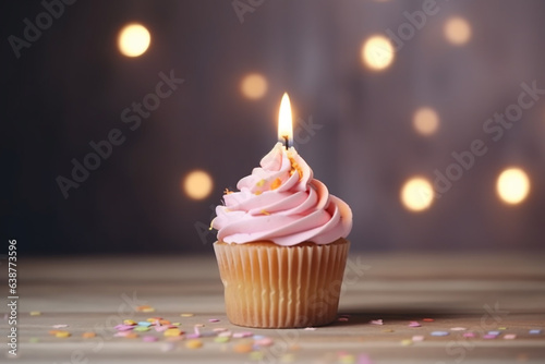 Tempting Birthday Cupcake with Candle on Vibrant Background - Created with generative AI tools