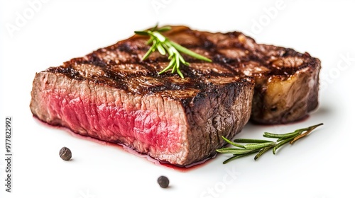 Tender and flavorful Kobe beef steak isolated on a pristine white background.