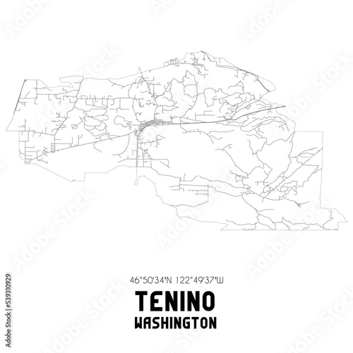 Tenino Washington. US street map with black and white lines.