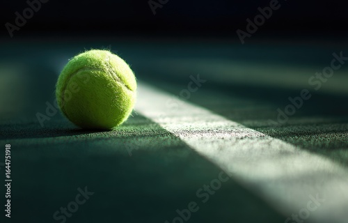 tennis, ball, court, green, light, shadow, line, white, sport, game, play, sharpened, close, detail, surface, illuminated, dark, contrast, texture, equipment, active, motion, leisure, competition, single, round, yellow, lime, vibrant, sporting, indoor, professional, practice, training, match, impact, preparation, strategic, athletic, success, winner, victory, gameplay, performance, skill, energy