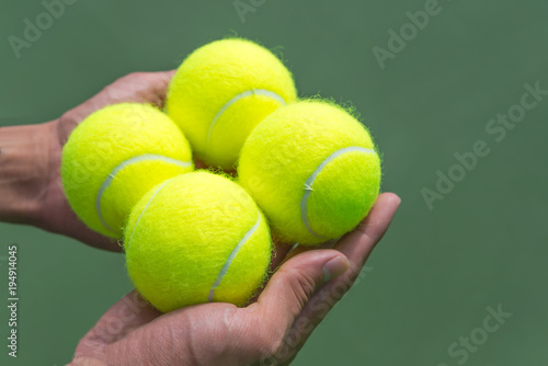 Tennis balls in hand.