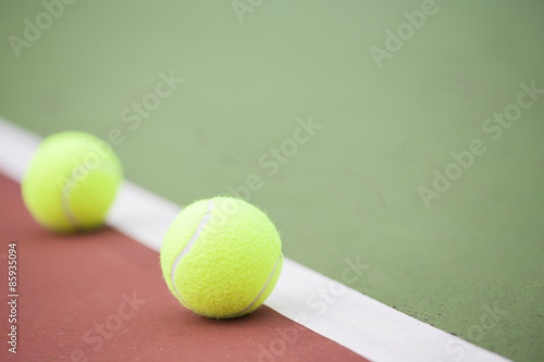 Tennis court with tennis balls