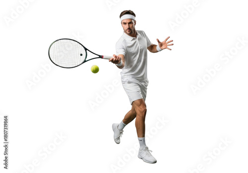 tennis, player, athlete, sport, racket, ball, swing, action, motion, competition, game, forehand, backhand, serve, smash, court, fitness, training, equipment, transparent, background, isolated, studio, professional, recreation, active, performance, dynamic