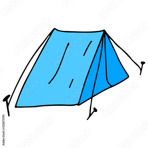 Tent in cartoon style on an isolated white background. Travel and camping. Stock vector illustration
