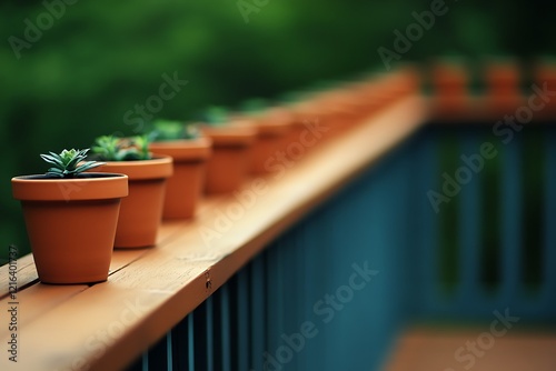 plant, pot, terracotta, garden, nature, outdoors, succulent, small, green, growth, brown, wood, deck, patio, simple, beauty, calm, peaceful, row, arrangement, detail, closeup, exterior, cosy
