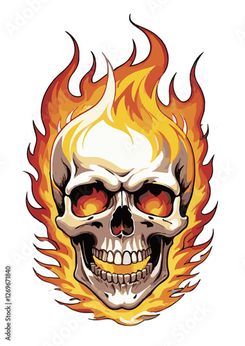 Teschio minaccioso avvolto da fiamme ardenti. Generative AI