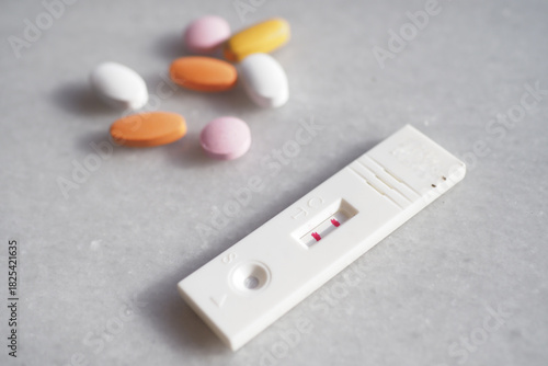 test, kit, health, tablet, medication, pink, orange, white, grey, surface, medicals, check, assessment, wellness, diagnostic, health care, home, monitoring, symptom, pill, awareness, preventive, exam, drug, testing, tool, relaxation, balance, colours, personal