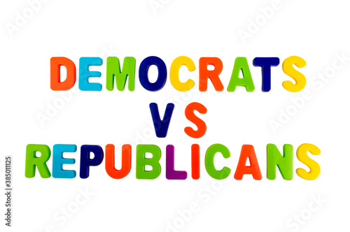 Text DEMOCRATS VS REPUBLICANS on a white background