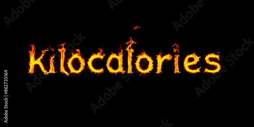 Text kilocalories in flame and fire on solid background