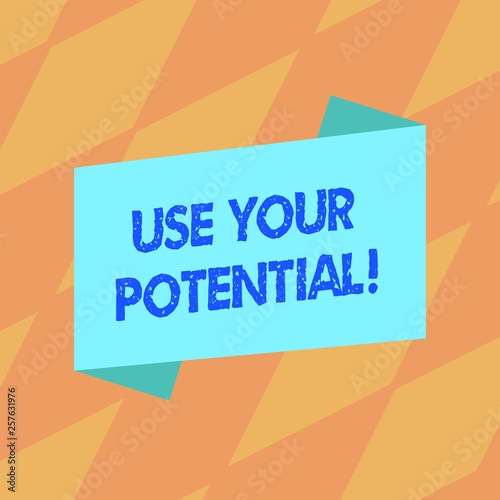 Text sign showing Use Your Potential. Business photo showcasing achieve as much natural ability makes possible Blank Color Folded Banner Strip Flat Style photo for Announcement Poster