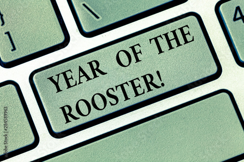 Text sign showing Year Of The Rooster. Conceptual photo Chinese horoscope China traditional celebration Keyboard key Intention to create computer message, pressing keypad idea