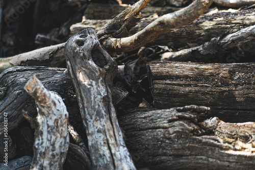 Texture detail of old and dry trunks of almond wood