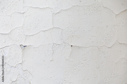 texture of a white old wall with cracks and peeled paint